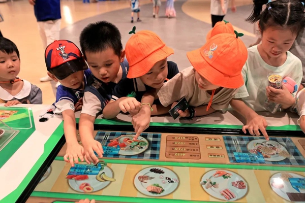 在反应时间测试区,孩子们通过快速拍下随机亮起的红色按键灯,来锻炼反应能力。