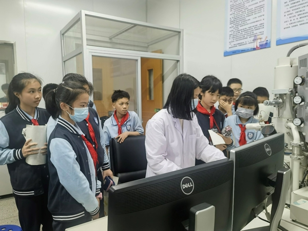 4月19日下午,国科大福建学院附属中学到中国科学院海西研究院开展主题为“走进海西研究院 争做‘四自’好少年”的党团队一体化活动,国科大福建学院附属中学校长李清带领100余名师生参加了此次活动。中国科学院海西研究院测试中心和吴立新课题组的工作人员为参加活动的师生们准备了丰富的科普讲座报告、参观学习内容以及手工体验活动。