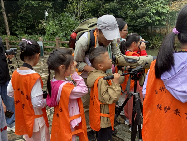 本次活动在福州动物园南区开展,邀请自然导师、资深“鸟人”林晨带领大家走进自然,走近远方来客“冬候鸟”,认识并了解我们的鸟类邻居及冬候鸟在福州的生活及故事。活动分为室内课及户外观察课。30分钟的室内课,老师带领孩子们认识常见的鸟类,学会观察,学会望远镜的使用。之后60分钟的户外观察时间里,孩子们从开始的由老师找到教会他们观察,渐入佳境,体会到了寻找和观察的乐趣。苍鹭、池鹭、夜鹭的区别,暗绿绣眼群的欢快采食、白胸苦恶鸟带娃与黑天鹅战斗、阳光下闪耀的叉尾太阳鸟……一场活动下来,大家认识了十余种鸟类,通过这些鸟类及故事,生动体会了什么是生物多样性,什么是生态平衡。