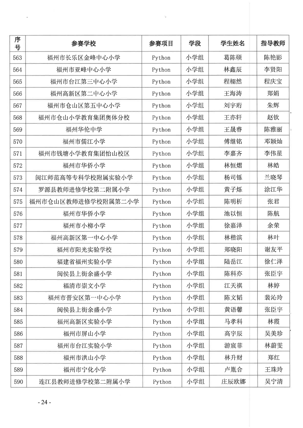 附件:关于公布第十九届福州市青少年机器人竞赛获奖名单的通知